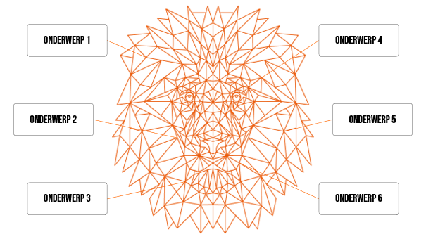 The Lion Line, which represents the team, is positioned at the center of the screen. Surrounding it are six different topics, each connected to the lion with lines that symbolize various aspects of the team.Start screen (columns)