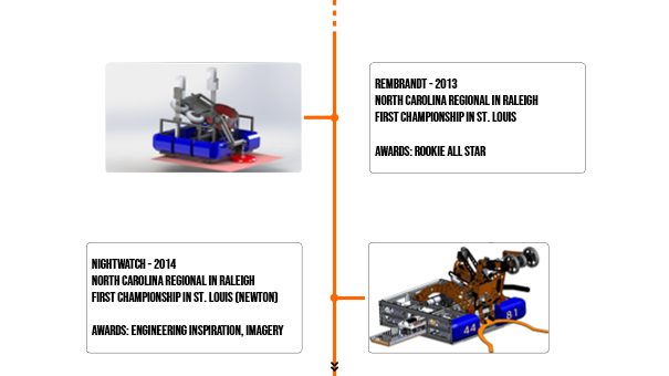 This section highlights four key aspects of the team: the robot, the team itself, outreach, and partners. Each has its own story and plays an equally important role within Team Rembrandts.Robot timeline
